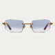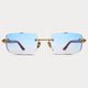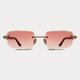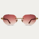 A sophisticated rimless frame with 100% genuine wood temples, featuring custom Oro-branded hieroglyphics engraved into the temples. Enhanced with stainless steel hardware and semi-beveled lenses for ultimate clarity and a refined touch of detail.
