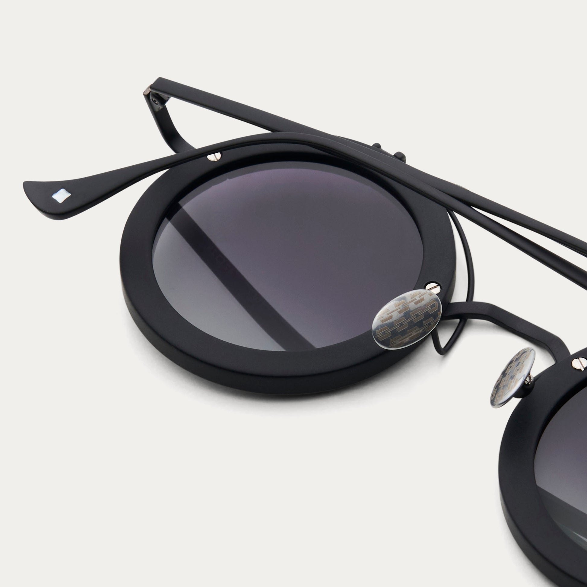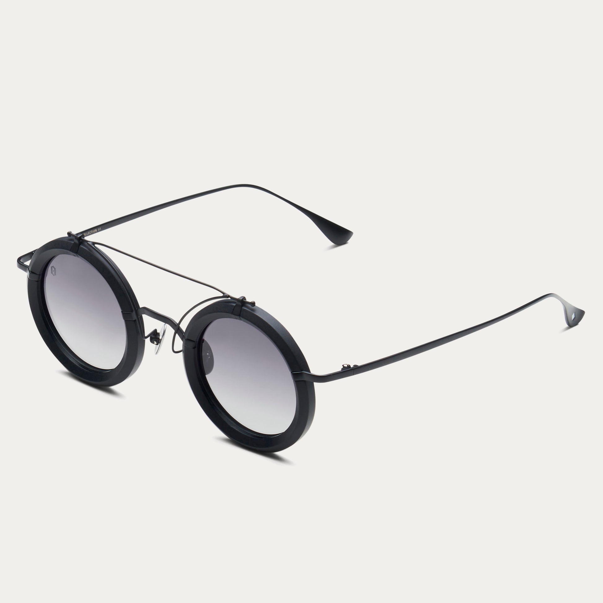 Inspired by vintage welding goggles, the Alchemist combines industrial boldness with modern luxury. Circular lenses, double bridge construction, and premium acetate blended with stainless steel define this lightweight yet striking frame, complete with UV400 protection.