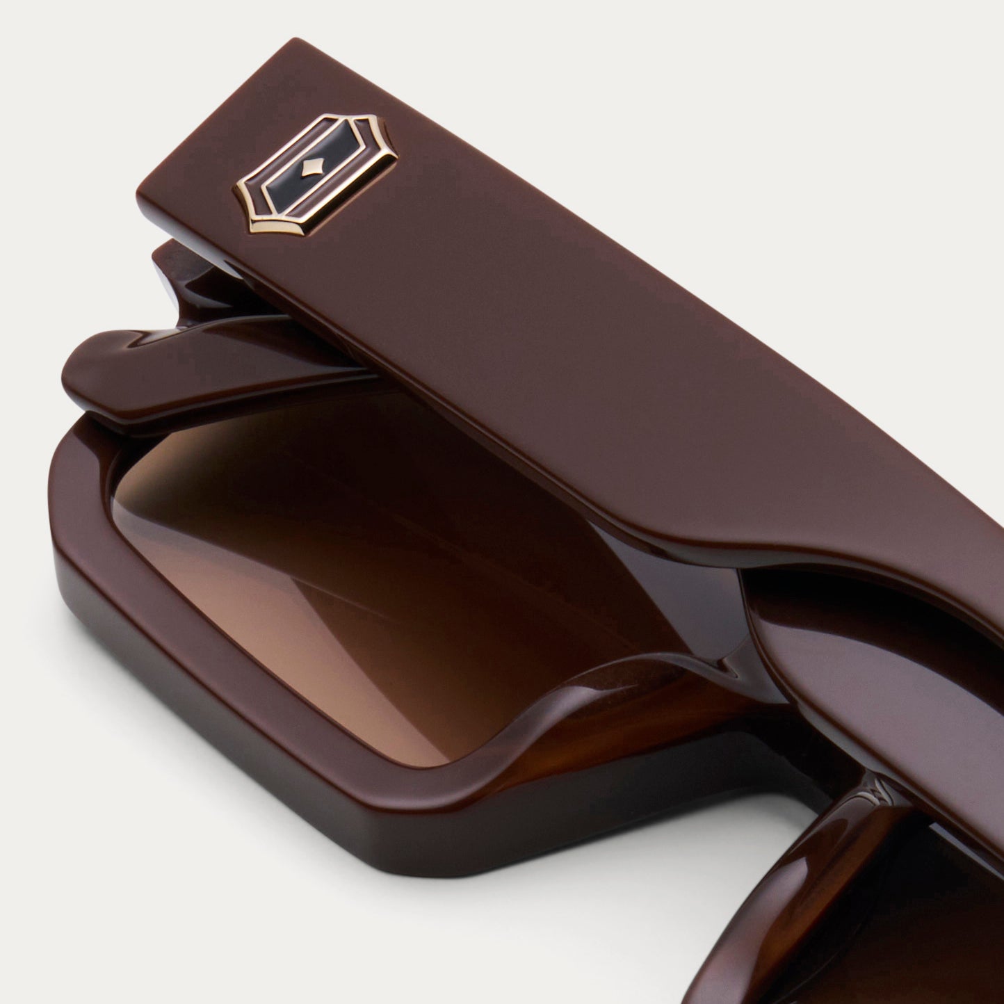The Titan is a bold, rectangular frame crafted from premium 8mm thick beveled acetate, featuring a prominent bevel along the top-front for an unmistakable look. The signature enamel-filled, 3D "O" logo adorns the temples, while the engraved lines on the temple tips provide a secure and comfortable fit.
