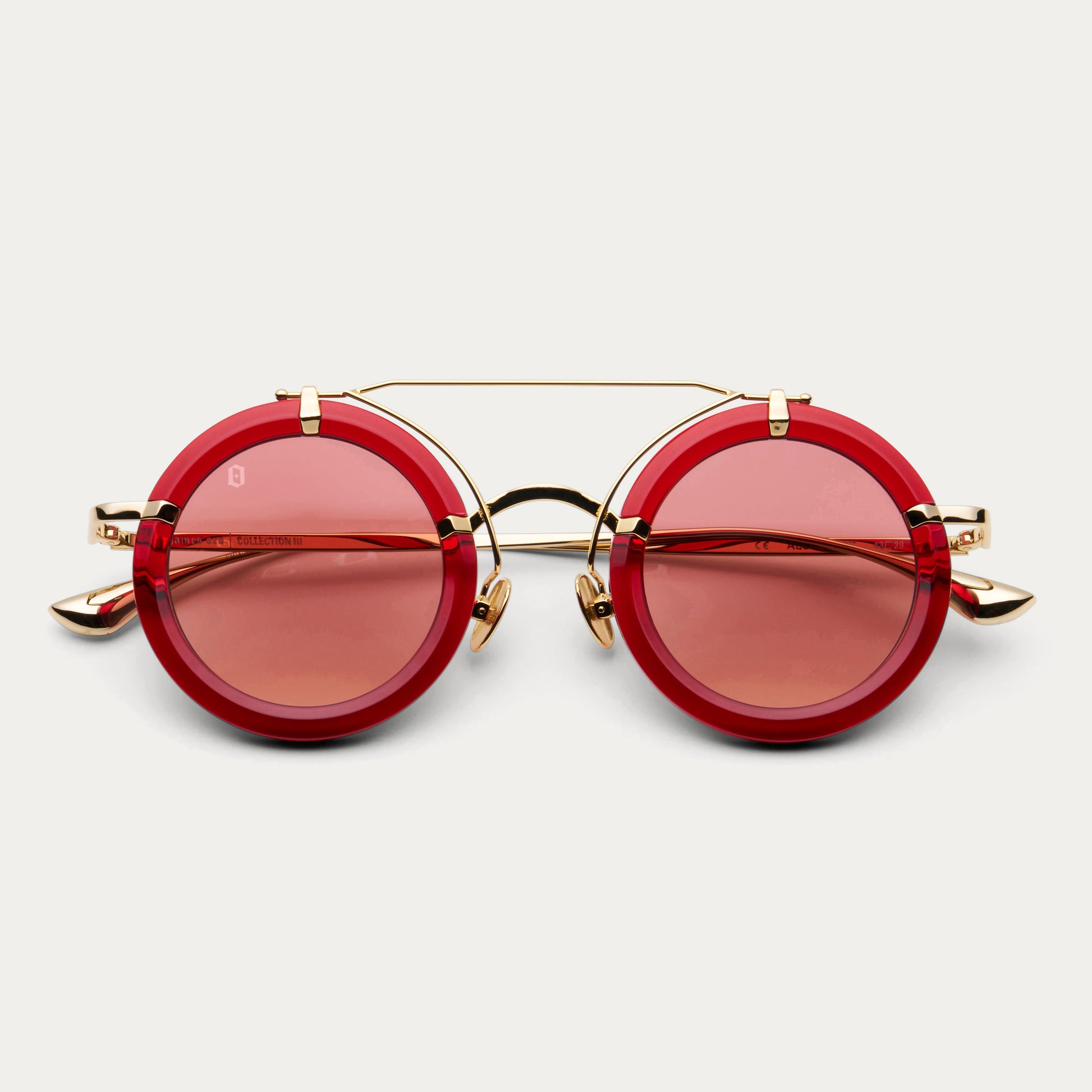 Inspired by vintage welding goggles, the Alchemist combines industrial boldness with modern luxury. Circular lenses, double bridge construction, and premium acetate blended with stainless steel define this lightweight yet striking frame, complete with UV400 protection.
