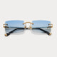 Meet a modern classic: An iconic rectangular rimless frame, the sleek Authentic II by James Oro comprises our signature "diamond" bevel-edge lens cut and logo-embossed tips. The frame is designed in 18KT gold or silver dipped iterations, and each temple is adorned with rope chain and logo details.