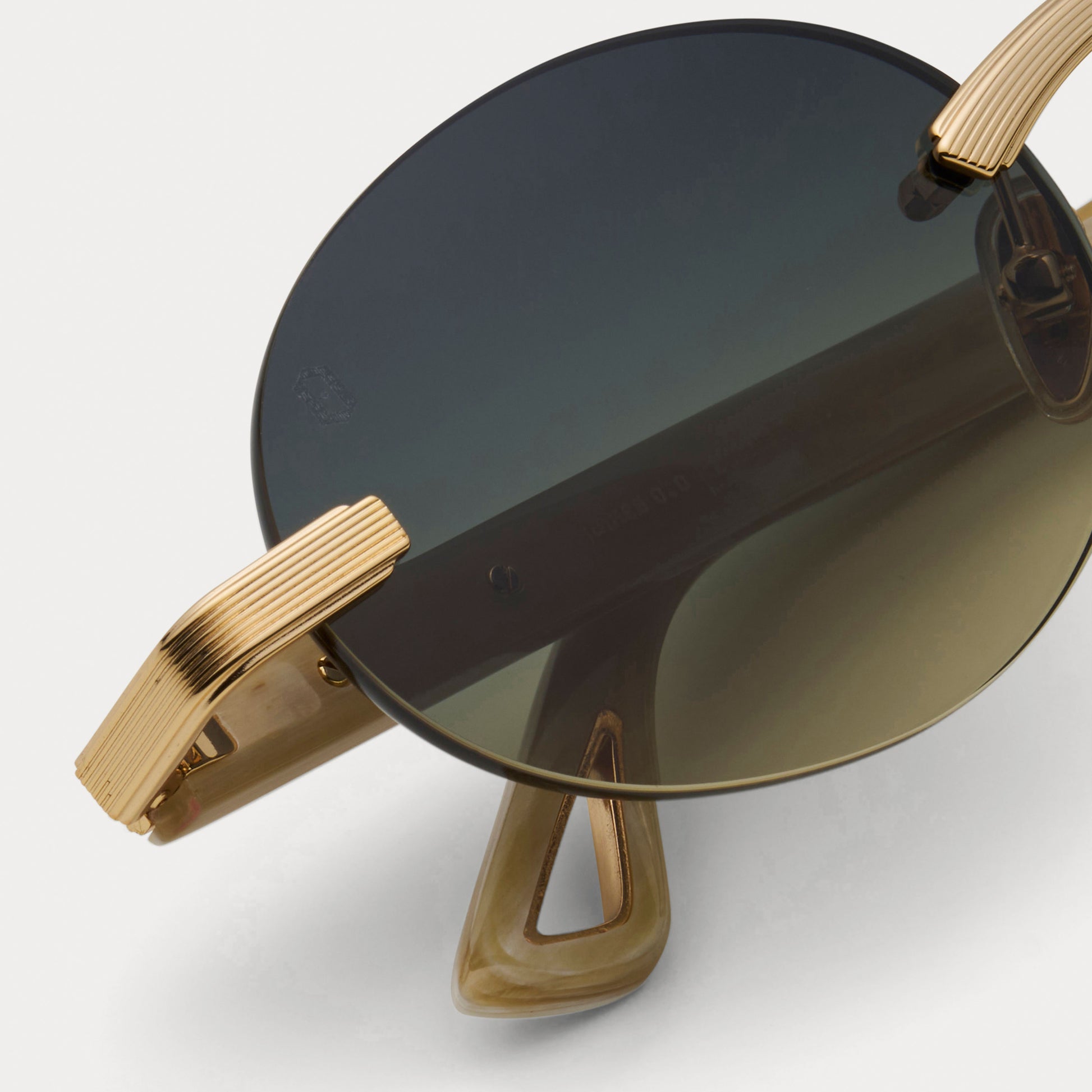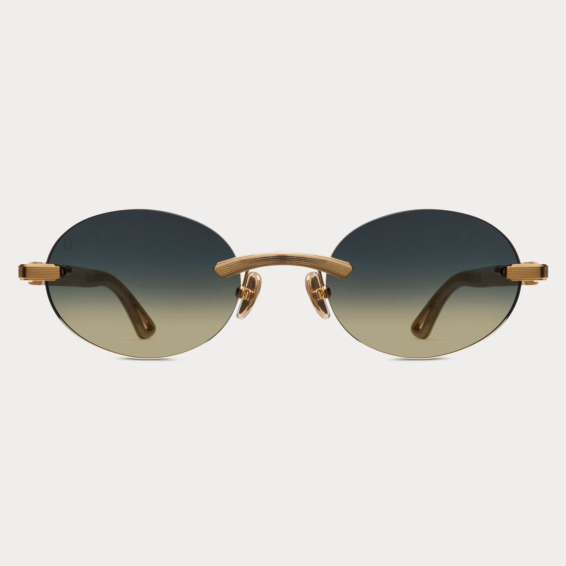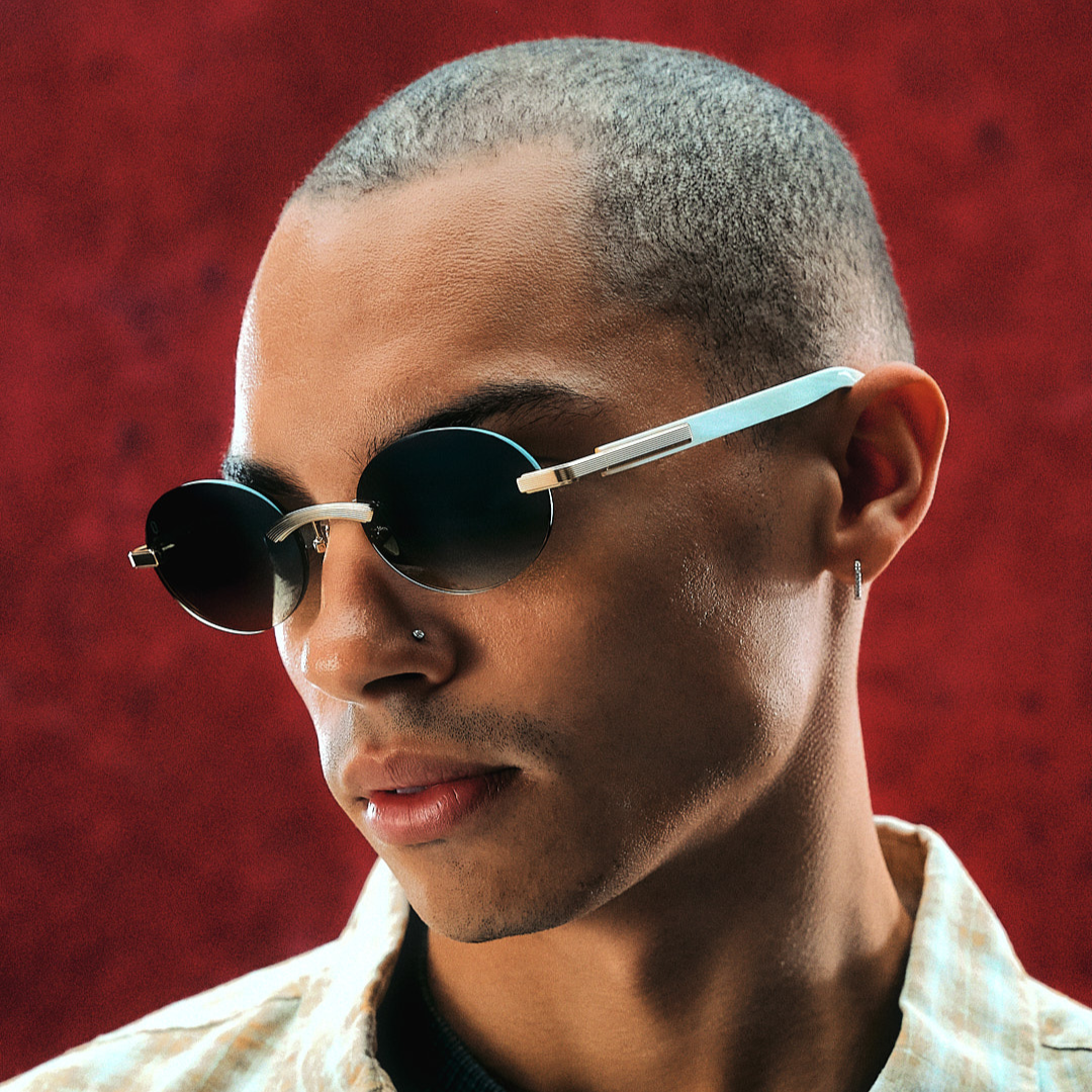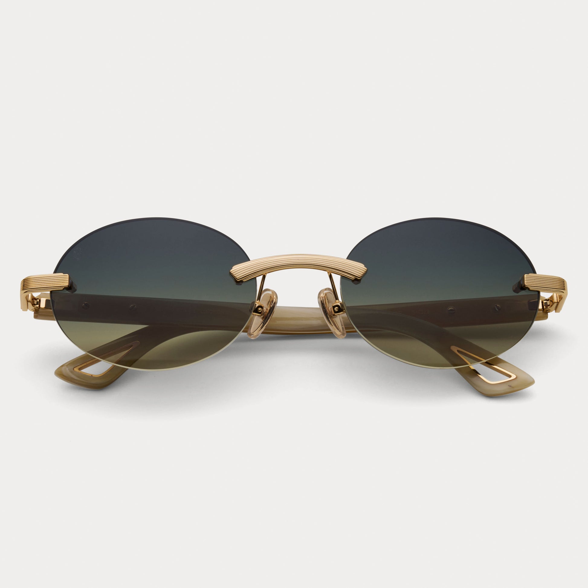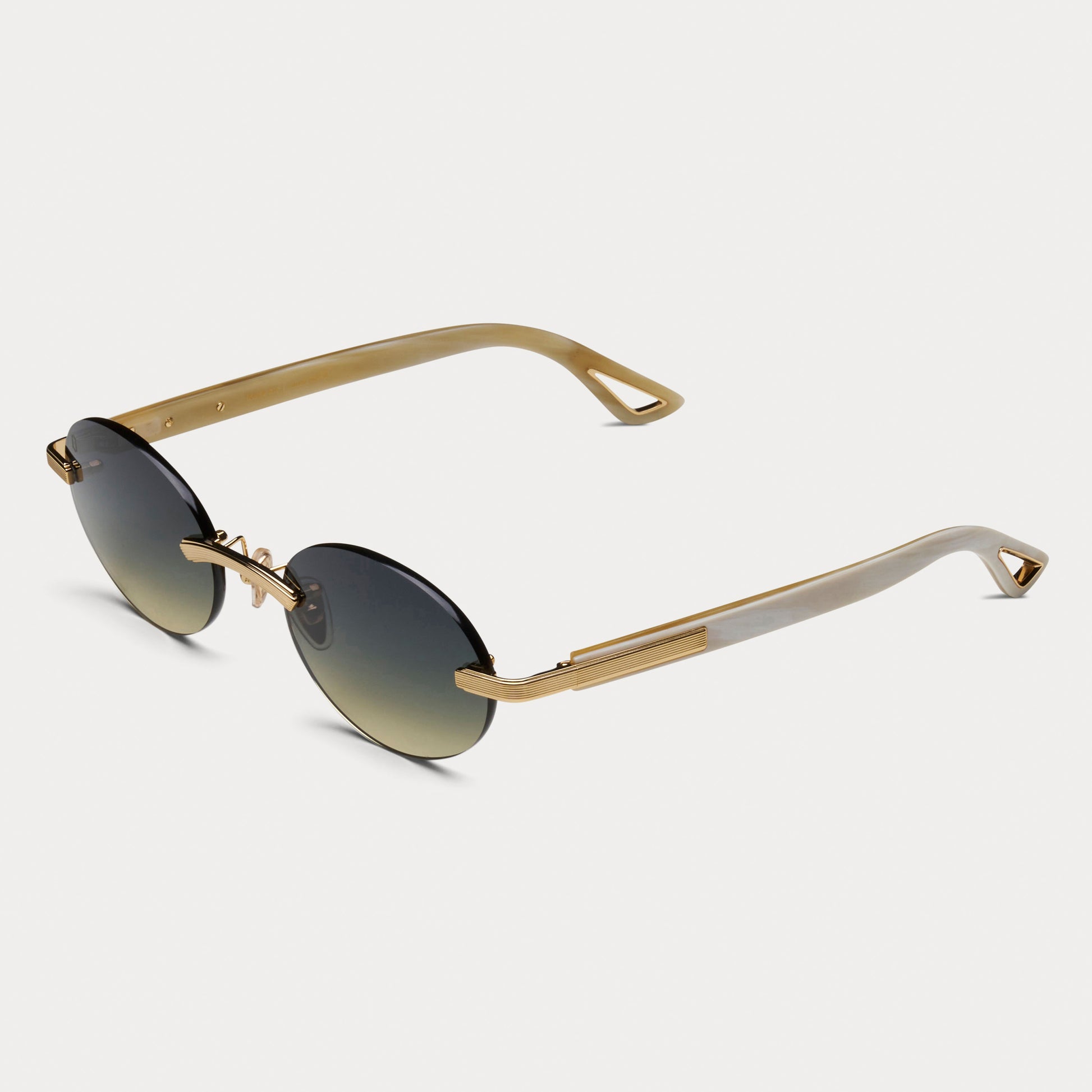 The Royce is an oval rimless frame carefully crafted from metal and buffalo horn. A balance of pure opulence meant to be worn and command attention.