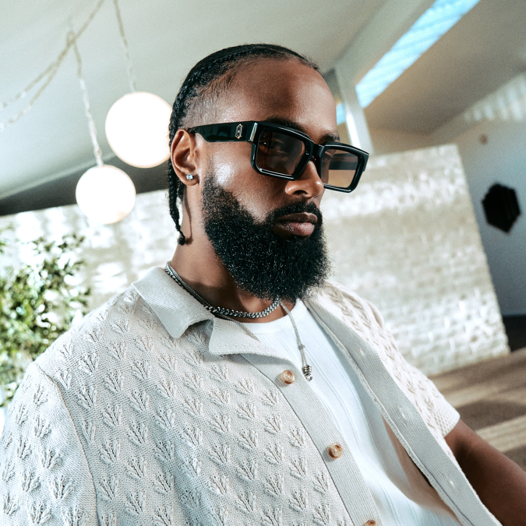 The Titan is a bold, rectangular frame crafted from premium 8mm thick beveled acetate, featuring a prominent bevel along the top-front for an unmistakable look. The signature enamel-filled, 3D "O" logo adorns the temples, while the engraved lines on the temple tips provide a secure and comfortable fit.