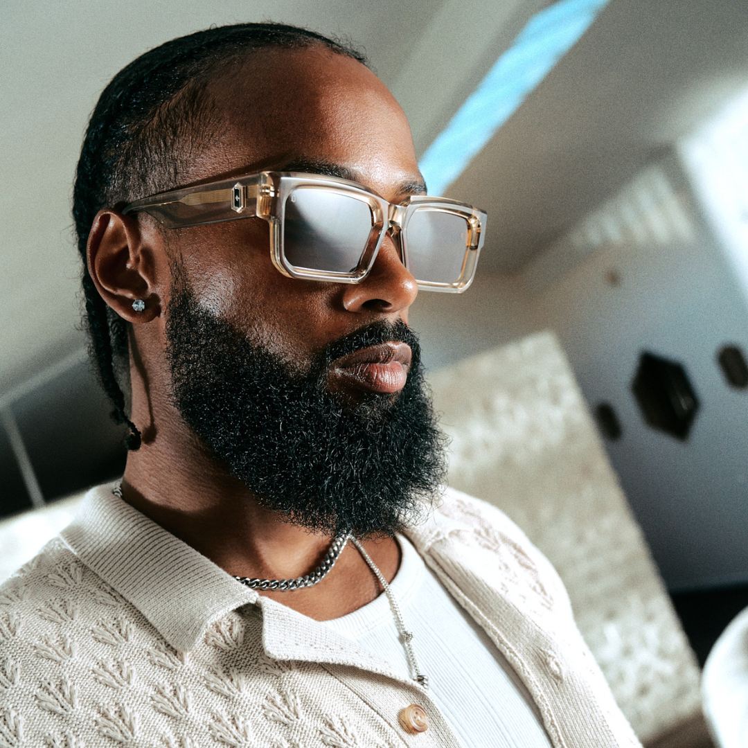 The Titan is a bold, rectangular frame crafted from premium 8mm thick beveled acetate, featuring a prominent bevel along the top-front for an unmistakable look. The signature enamel-filled, 3D "O" logo adorns the temples, while the engraved lines on the temple tips provide a secure and comfortable fit.