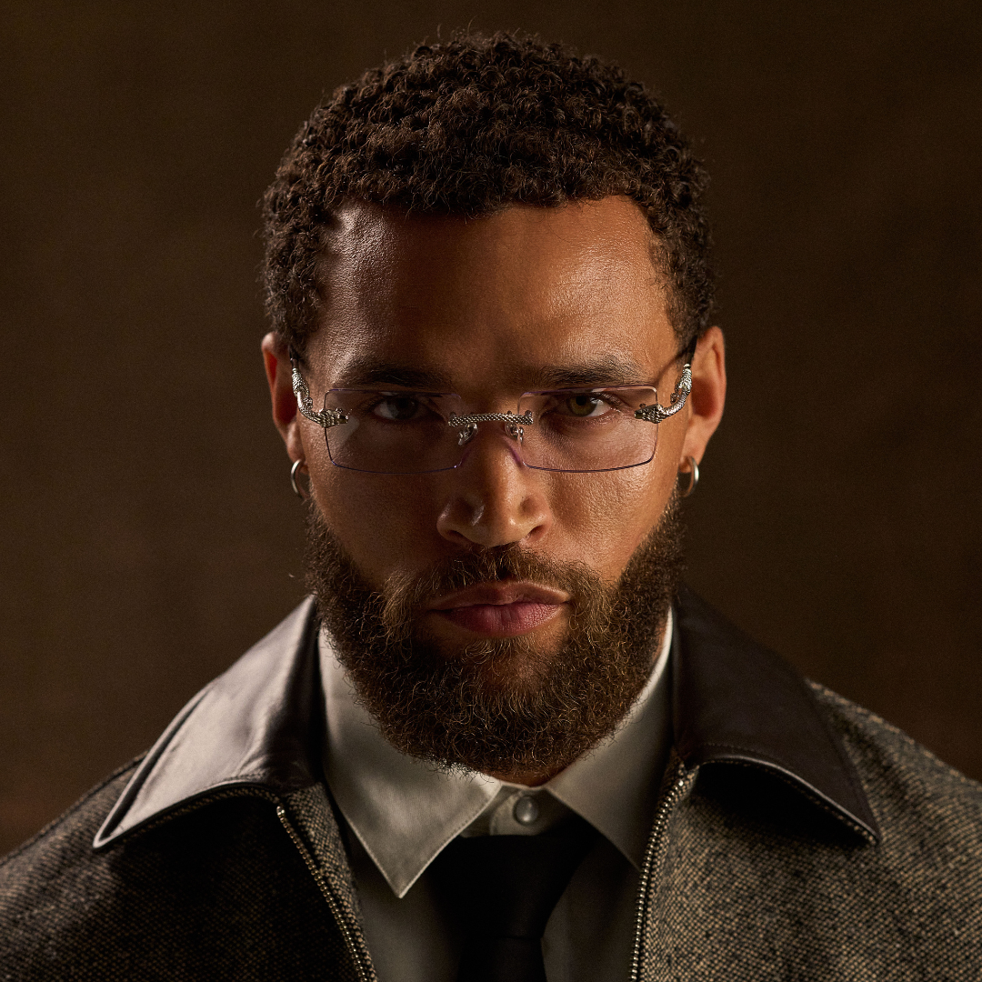 An iconic design from James Oro’s premier collection, the Serpent frames feature a coiling snake around the stainless steel temple, with the snake's head biting the rimless lens. Detailed craftsmanship and white stone eyes complete this statement frame.