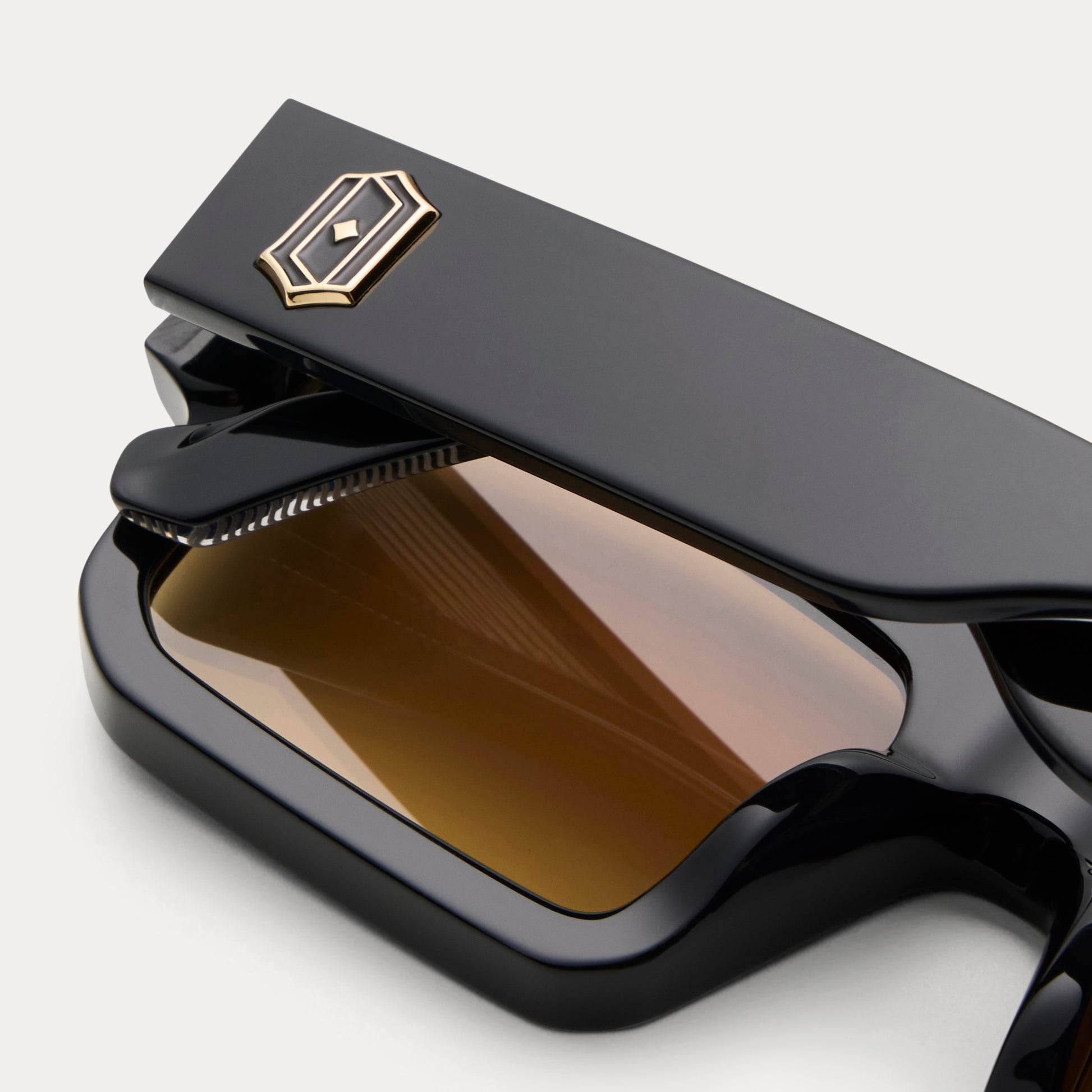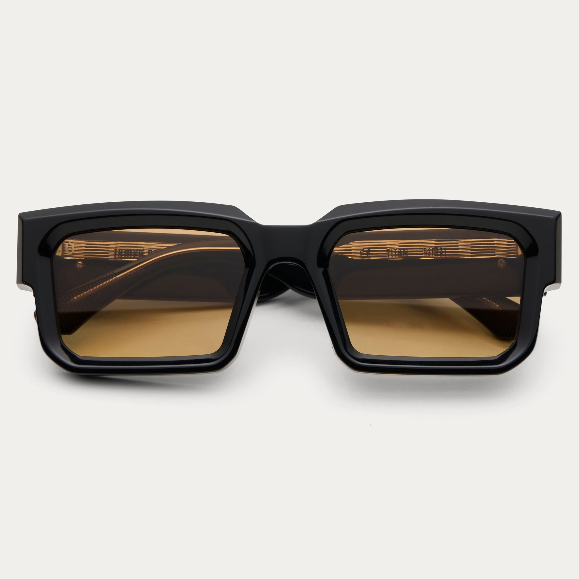 The Titan is a bold, rectangular frame crafted from premium 8mm thick beveled acetate, featuring a prominent bevel along the top-front for an unmistakable look. The signature enamel-filled, 3D "O" logo adorns the temples, while the engraved lines on the temple tips provide a secure and comfortable fit.
