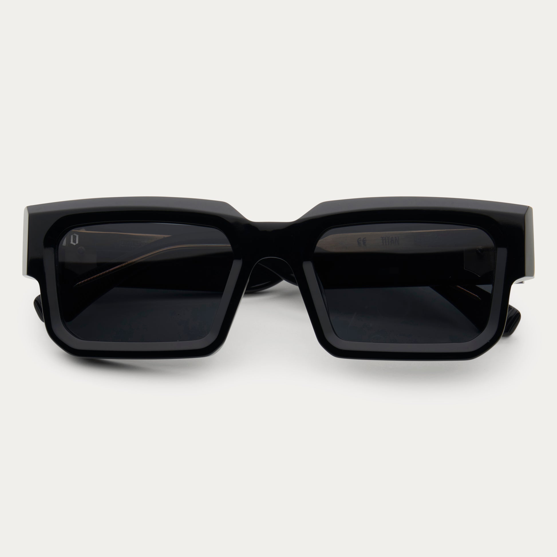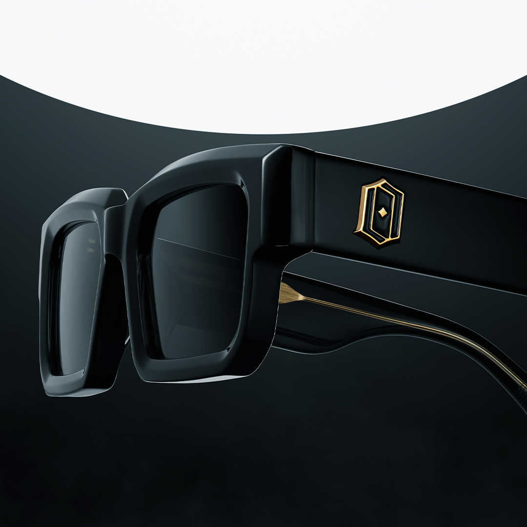 The Titan is a bold, rectangular frame crafted from premium 8mm thick beveled acetate, featuring a prominent bevel along the top-front for an unmistakable look. The signature enamel-filled, 3D "O" logo adorns the temples, while the engraved lines on the temple tips provide a secure and comfortable fit.