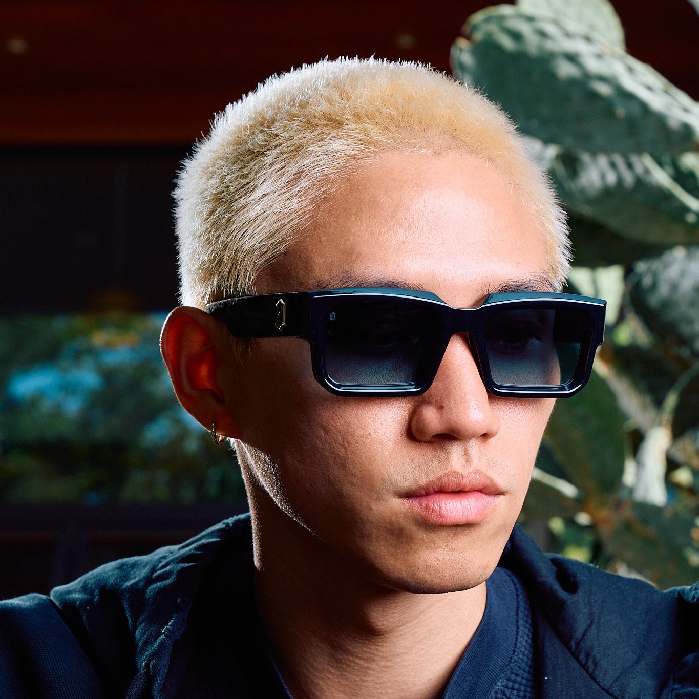 The Titan is a bold, rectangular frame crafted from premium 8mm thick beveled acetate, featuring a prominent bevel along the top-front for an unmistakable look. The signature enamel-filled, 3D "O" logo adorns the temples, while the engraved lines on the temple tips provide a secure and comfortable fit.