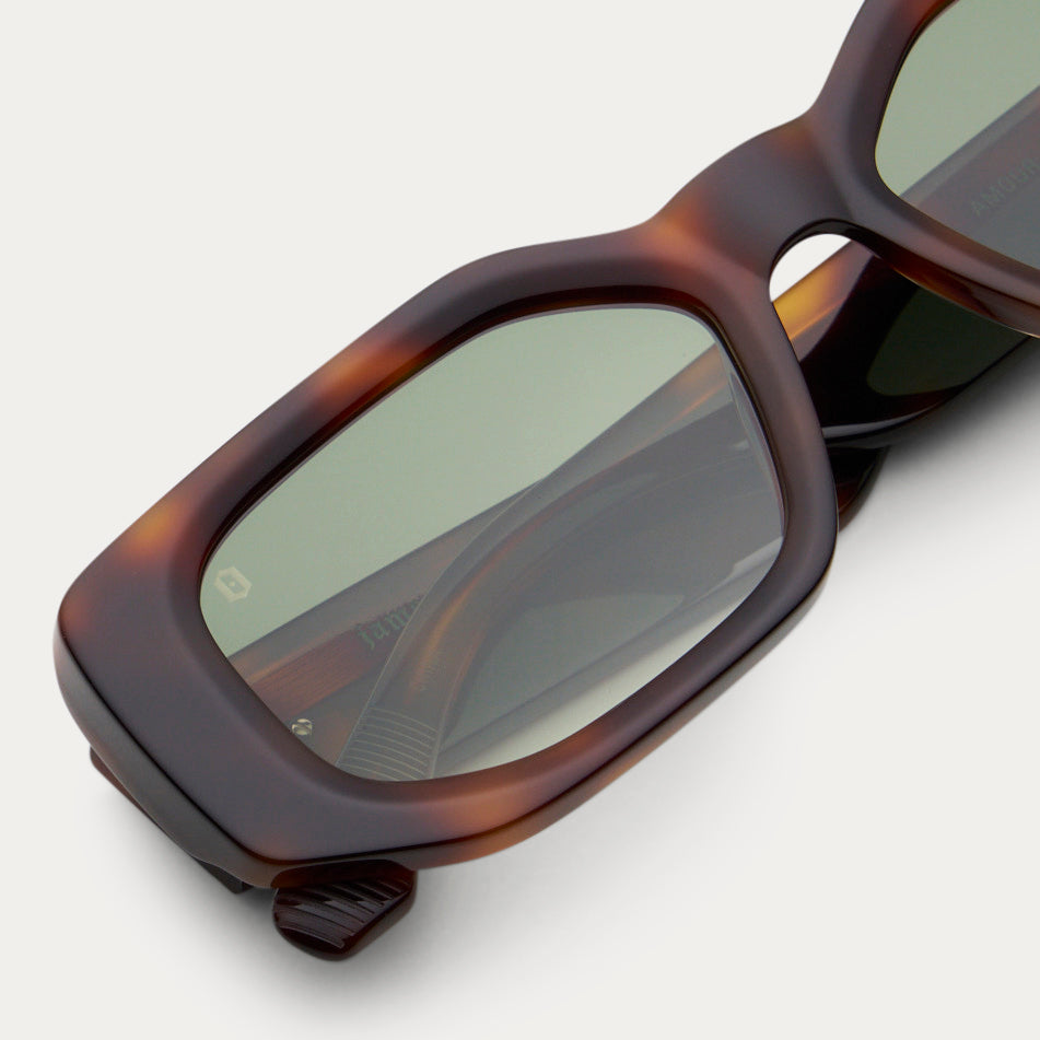 A modern take on iconic frames of the 90’s: Amour features a modified rectangular silhouette that gracefully compliments a variety of face shapes. Built to last with premium materials like five barrell hinges and triacetate polarized lenses/UV400 Lenses.