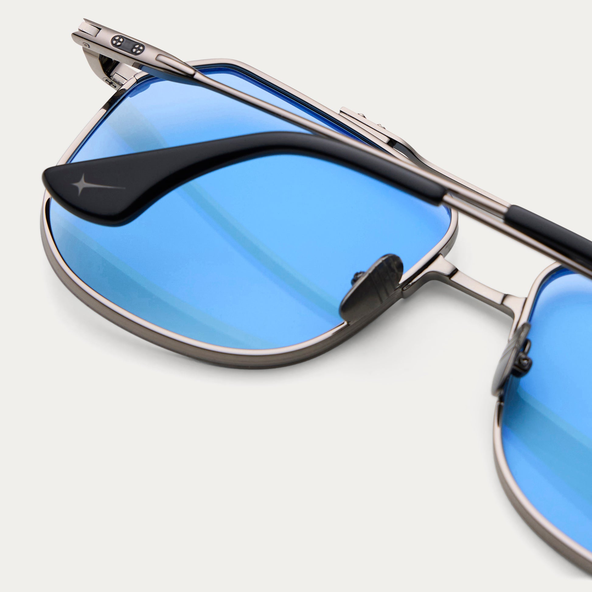 A distinct aviator silhouette featuring aggressive curves throughout its lens shape. Recruit provides a bold look with subtle line engraving details throughout. Recruit fits slightly more narrow than the average aviator style frame.