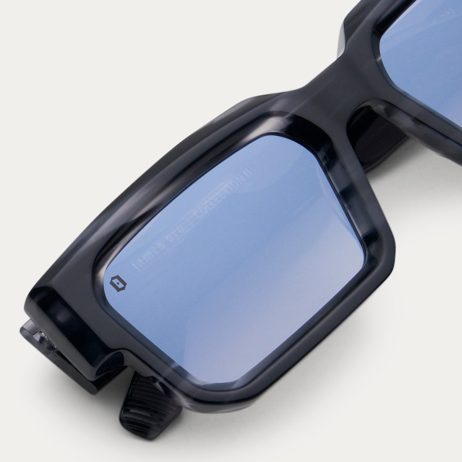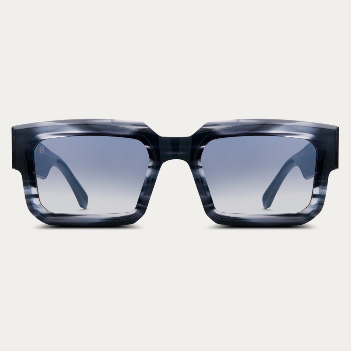 The Titan is a bold, rectangular frame crafted from premium 8mm thick beveled acetate, featuring a prominent bevel along the top-front for an unmistakable look. The signature enamel-filled, 3D "O" logo adorns the temples, while the engraved lines on the temple tips provide a secure and comfortable fit.