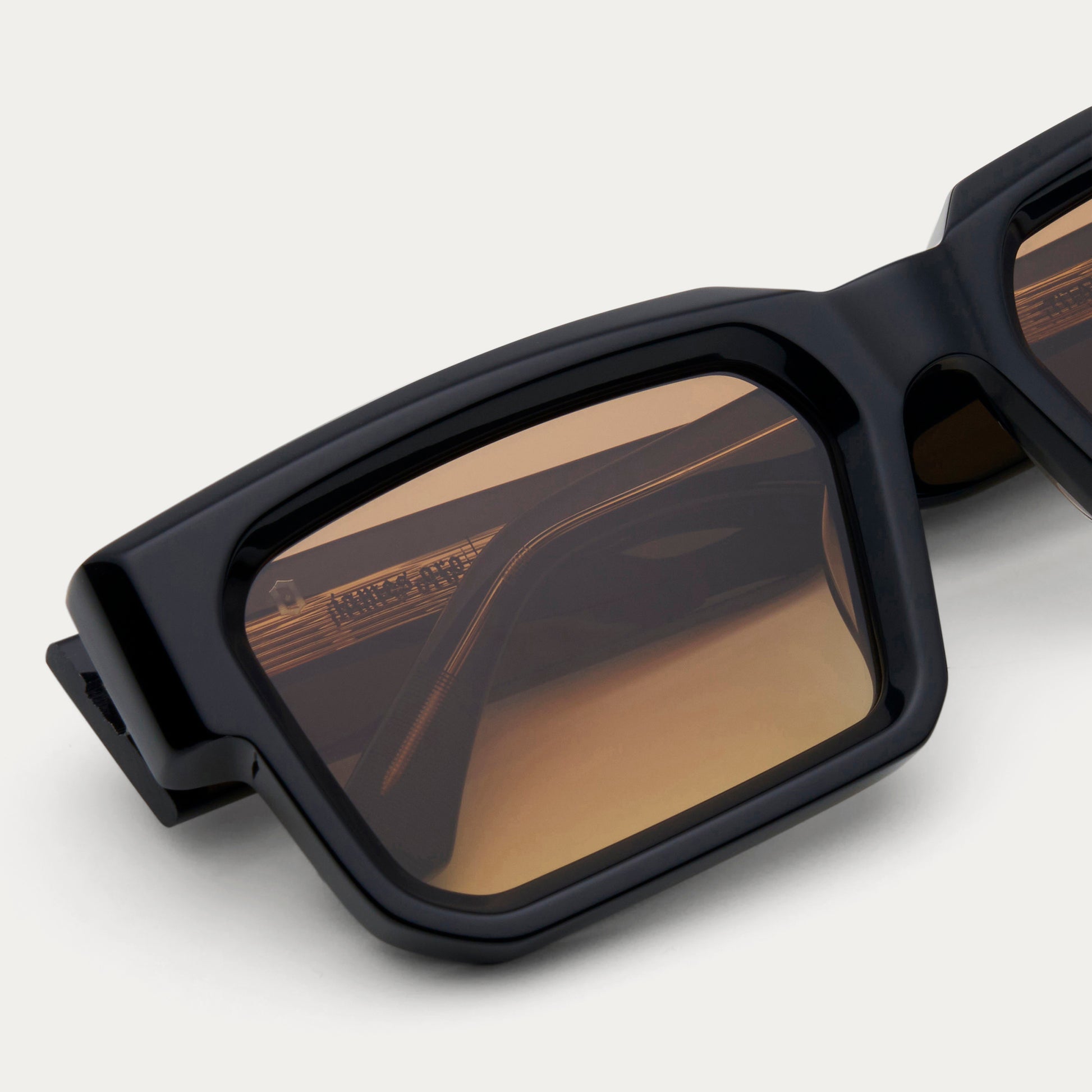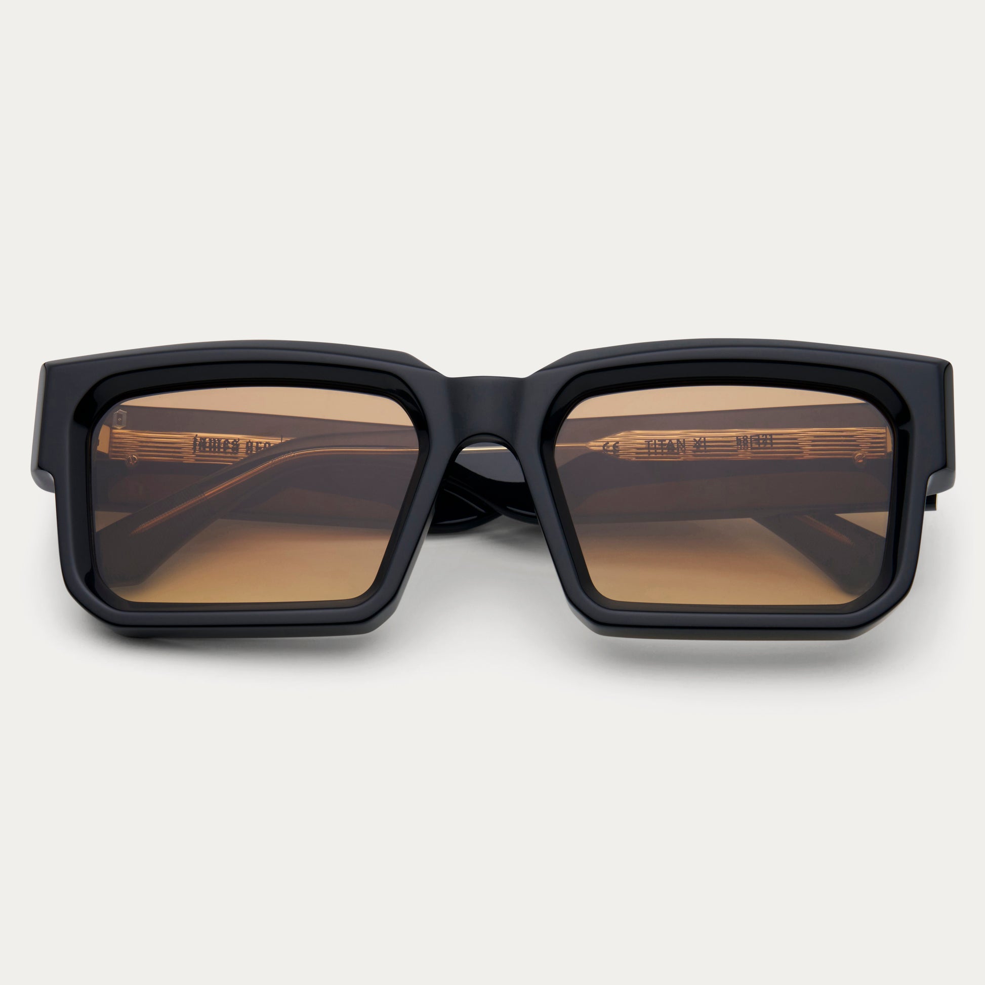 The Titan is a bold, rectangular frame crafted from premium 8mm thick beveled acetate, featuring a prominent bevel along the top-front for an unmistakable look. The signature enamel-filled, 3D "O" logo adorns the temples, while the engraved lines on the temple tips provide a secure and comfortable fit.