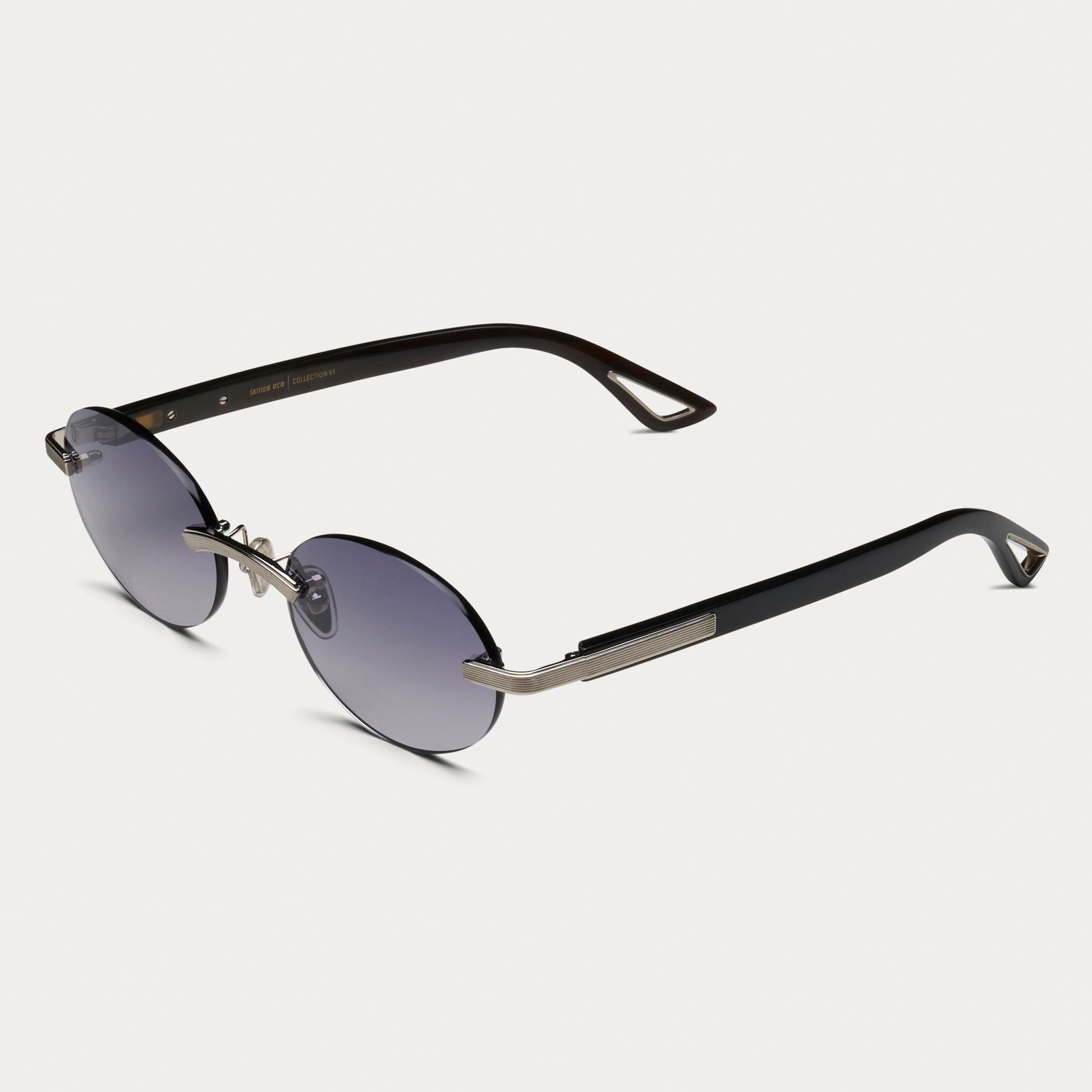 The Royce is an oval rimless frame carefully crafted from metal and buffalo horn. A balance of pure opulence meant to be worn and command attention.