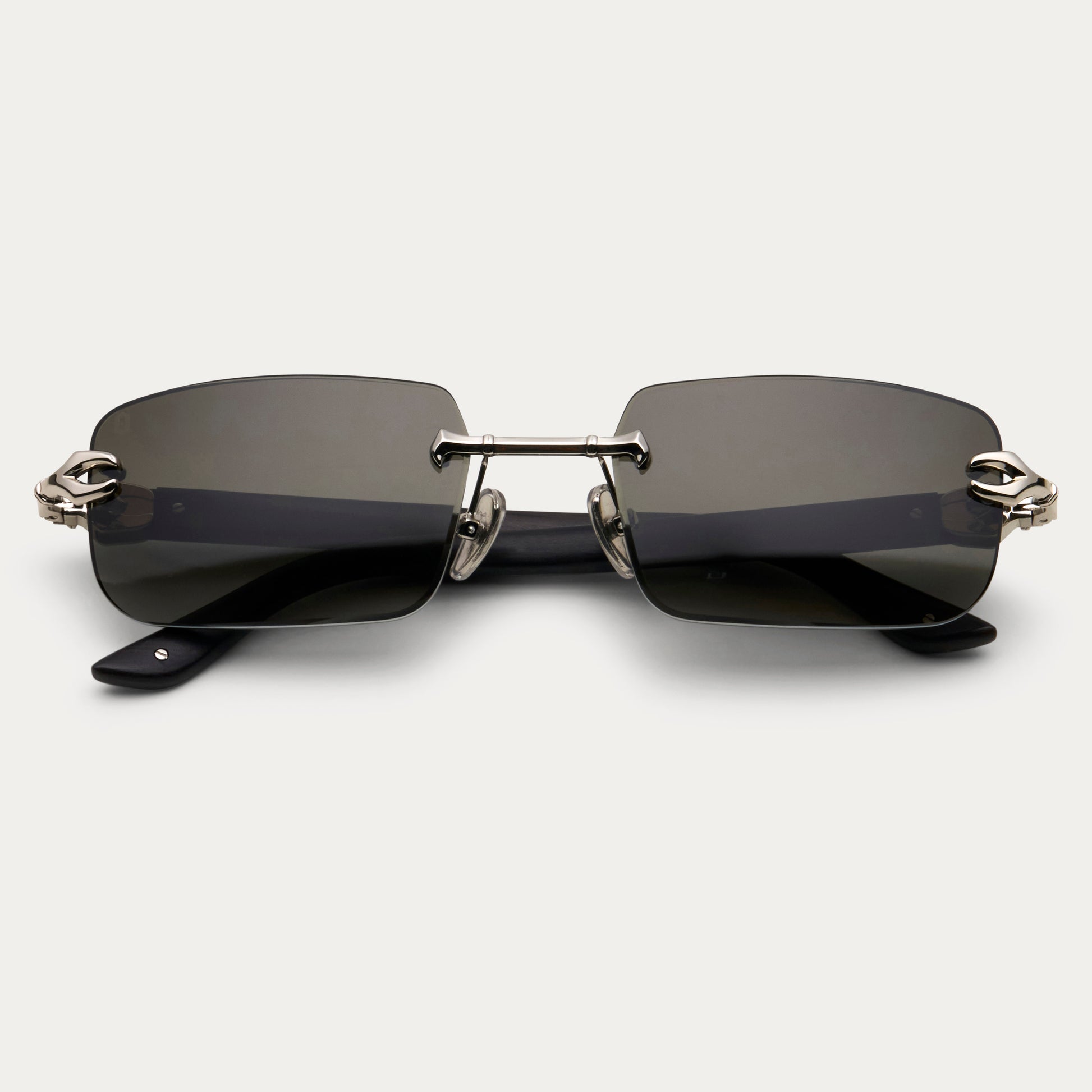 A sophisticated rimless frame with 100% genuine wood temples, featuring custom Oro-branded hieroglyphics engraved into the temples. Enhanced with stainless steel hardware and semi-beveled lenses for ultimate clarity and a refined touch of detail.