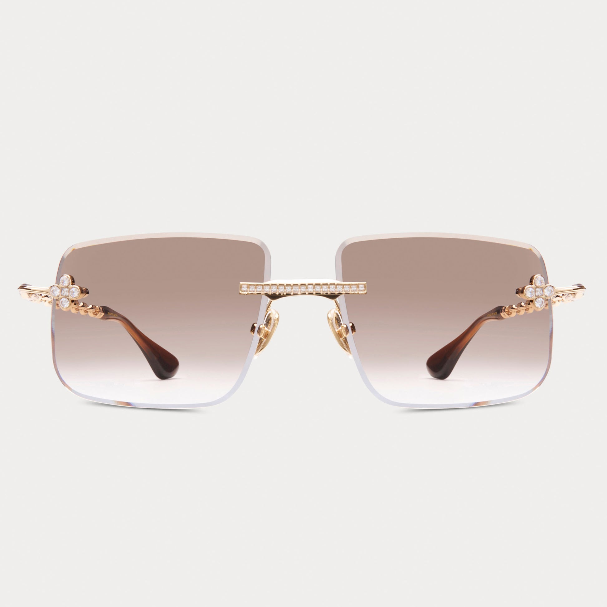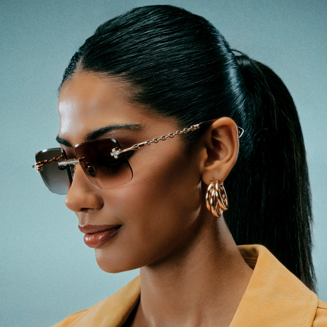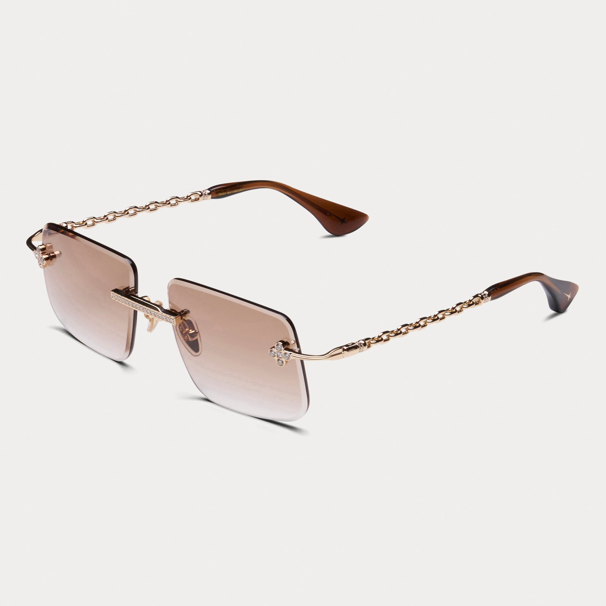 Fortune is a bold statement of luck and luxury, featuring large handset moissanite stones, four-leaf clover temple mounts, and chain-link temples for a daringly opulent finish.