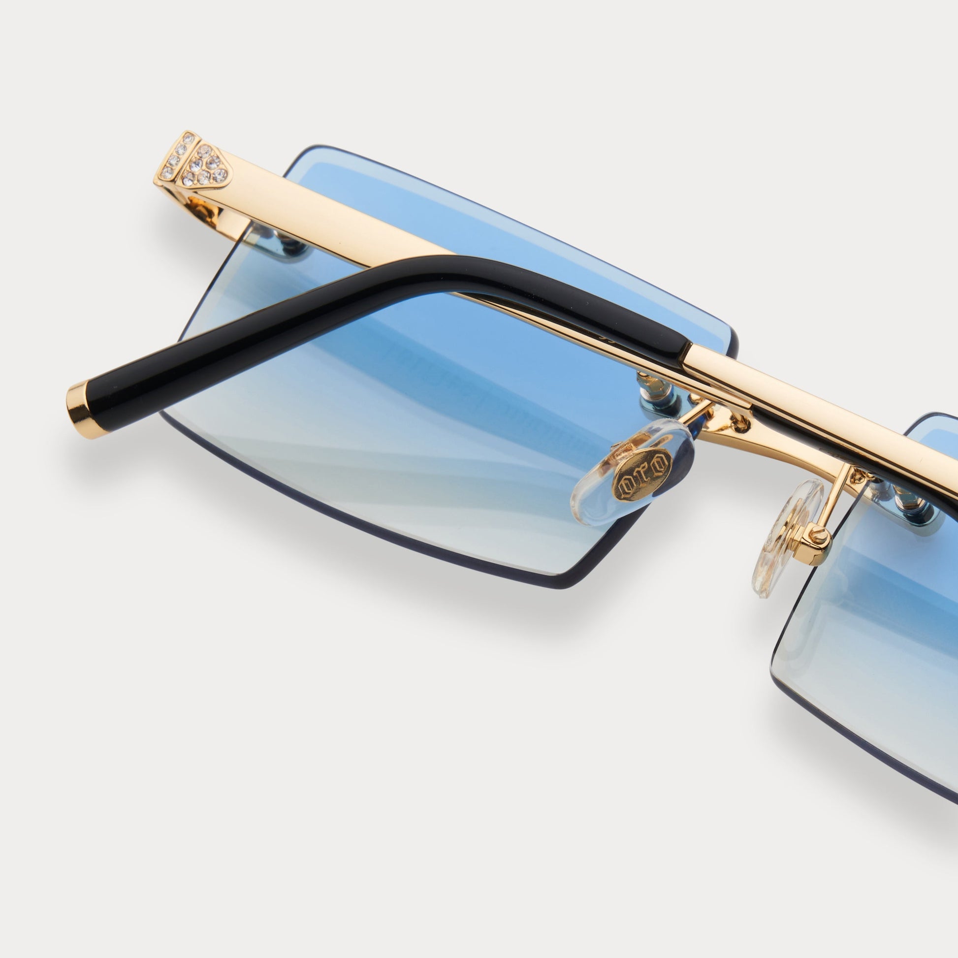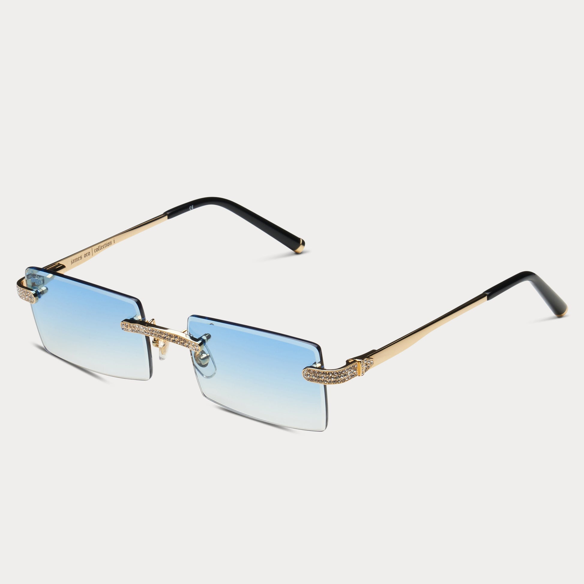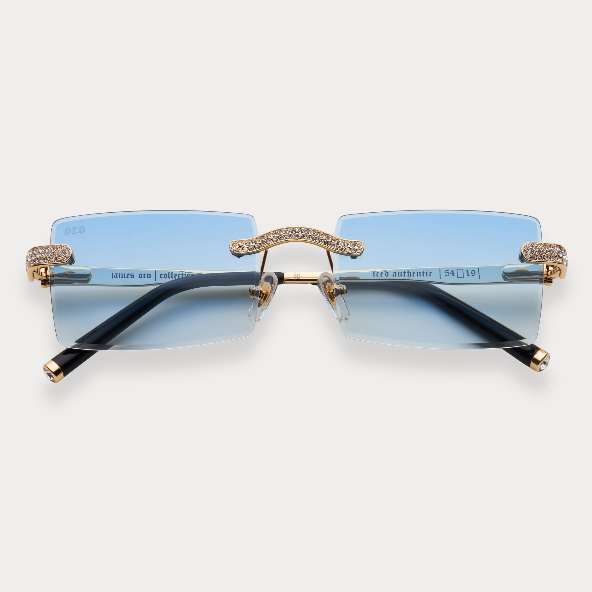 The frame that defined James Oro — now reimagined with a bold, brilliant edge. Its refined rectangular lenses and sleek metal chassis meet the radiance of precision-set cubic zirconia, designed to catch light from every angle.