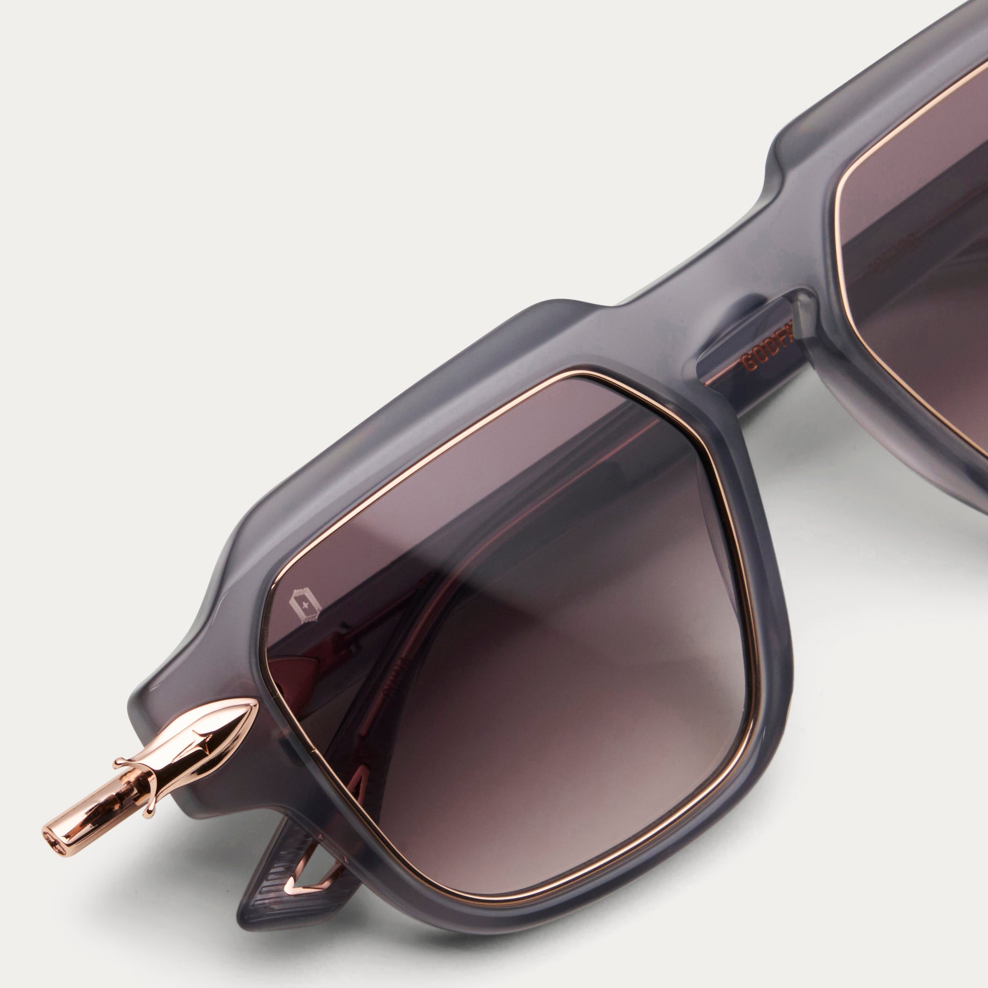 Hexagonal precision, gold rim accents, and rich black acetate craft a silhouette of timeless authority. Finished with signature arrowhead temple mounts — a future classic made for now.